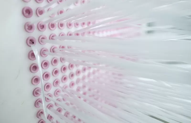集韧自主研发了适用于聚氨醋复合材料复亲截面拉挤的注射盒、模具等一系列的设计、生产工艺,同时使用定制化拉挤用聚酯树脂,目前集韧的玻纤增强聚氨酯型材拉挤工艺能够实现长时间稳定生产,合格率达到95% 以上。包括韩国LG 等一众国外企业正在基于集韧现有设计、生产技术进行深度的交流与合作,以期能将此产品和相关技术引入本国市场。