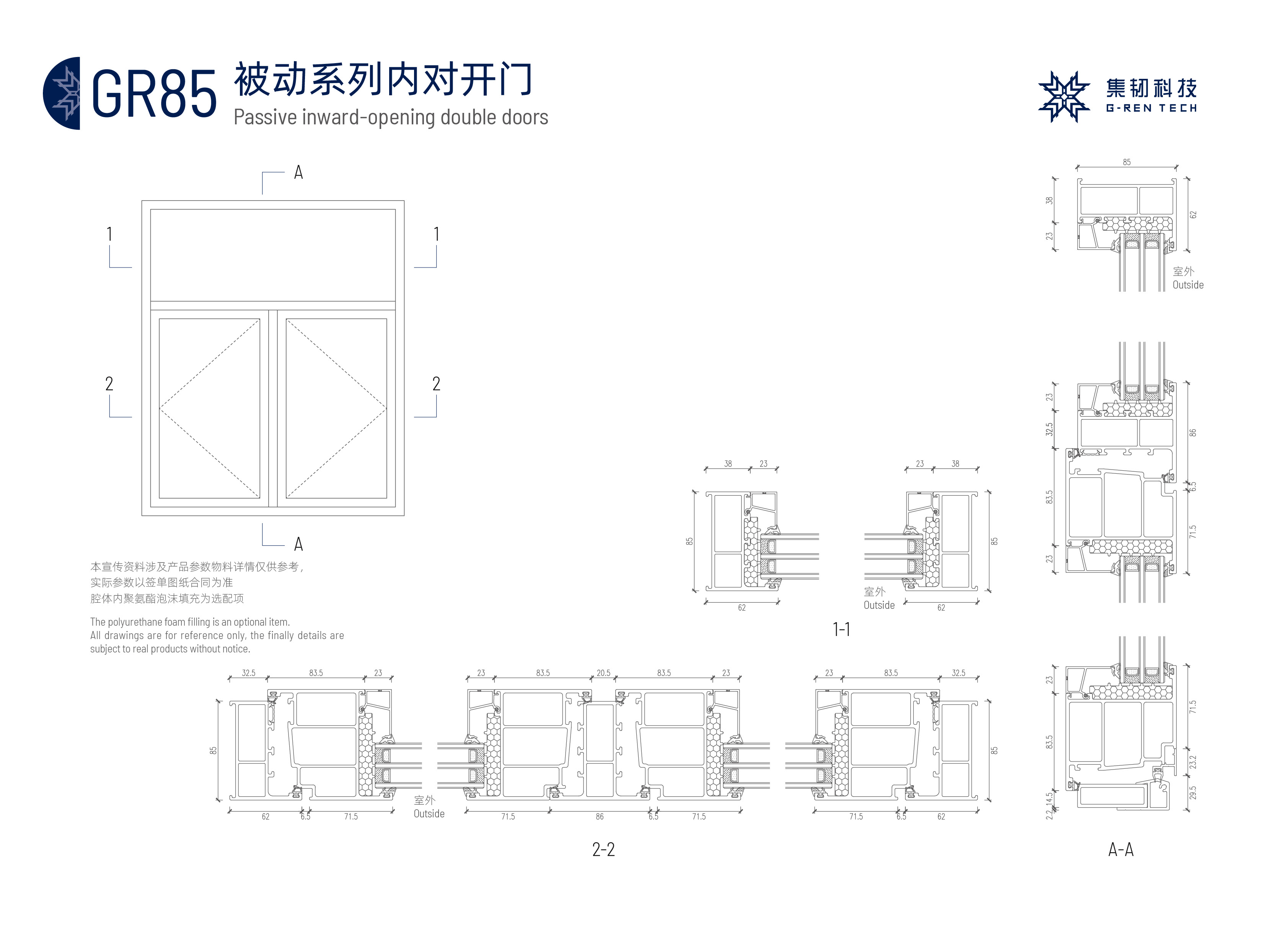 GR85双玻系列可做到整窗K值1.8(W/m2·K);